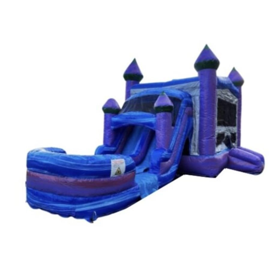 Step into a world of royal fun with the Purple Palace Combo! Featuring a vibrant purple and blue design, this inflatable castle is perfect for princes, princesses, and partygoers of all kinds. Whether you're planning a backyard bash or a school event, the Purple Palace adds a touch of magic to any celebration.