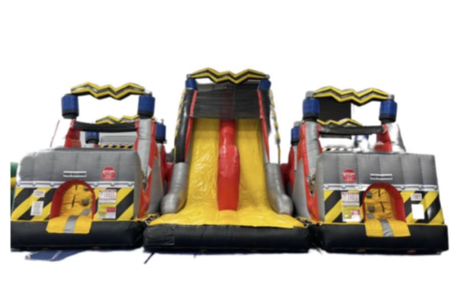 Get ready to spark some serious competition with the ultimate inflatable showdown—High Voltage Chaos! This massive 3-piece obstacle course is built for high-energy fun, thrilling races, and non-stop action. With two separate entrances, challengers take on unique obstacle paths that twist, turn, and test their skills—before both lanes collide at the towering slide climbing wall for one final race to the finish!